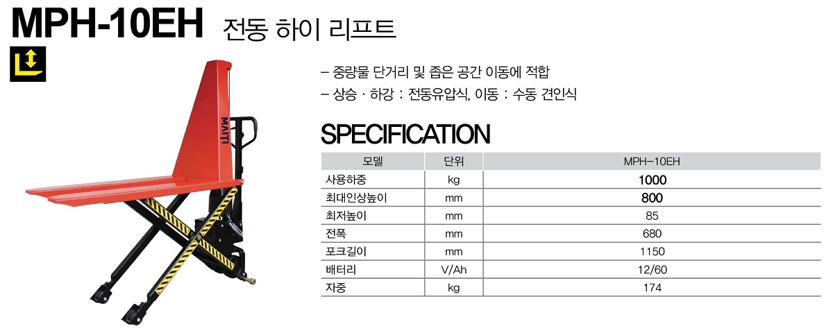 전동 하이 리프트 트럭 MPH-10EH