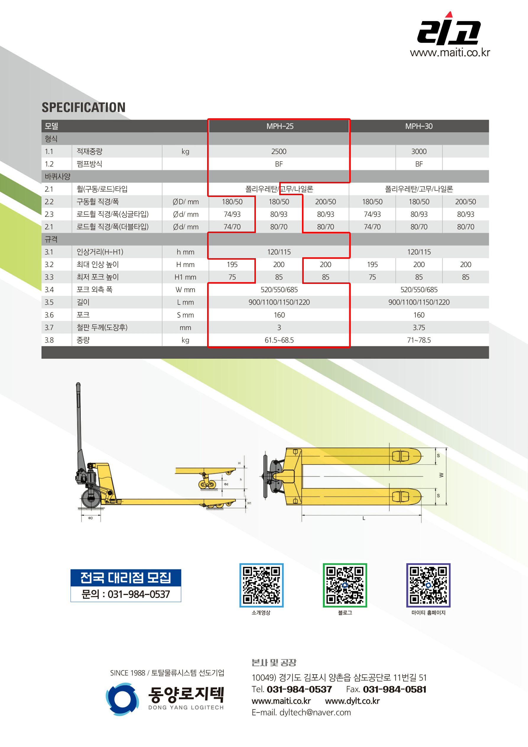 MPH-25-PH 핸드파렛트 트럭