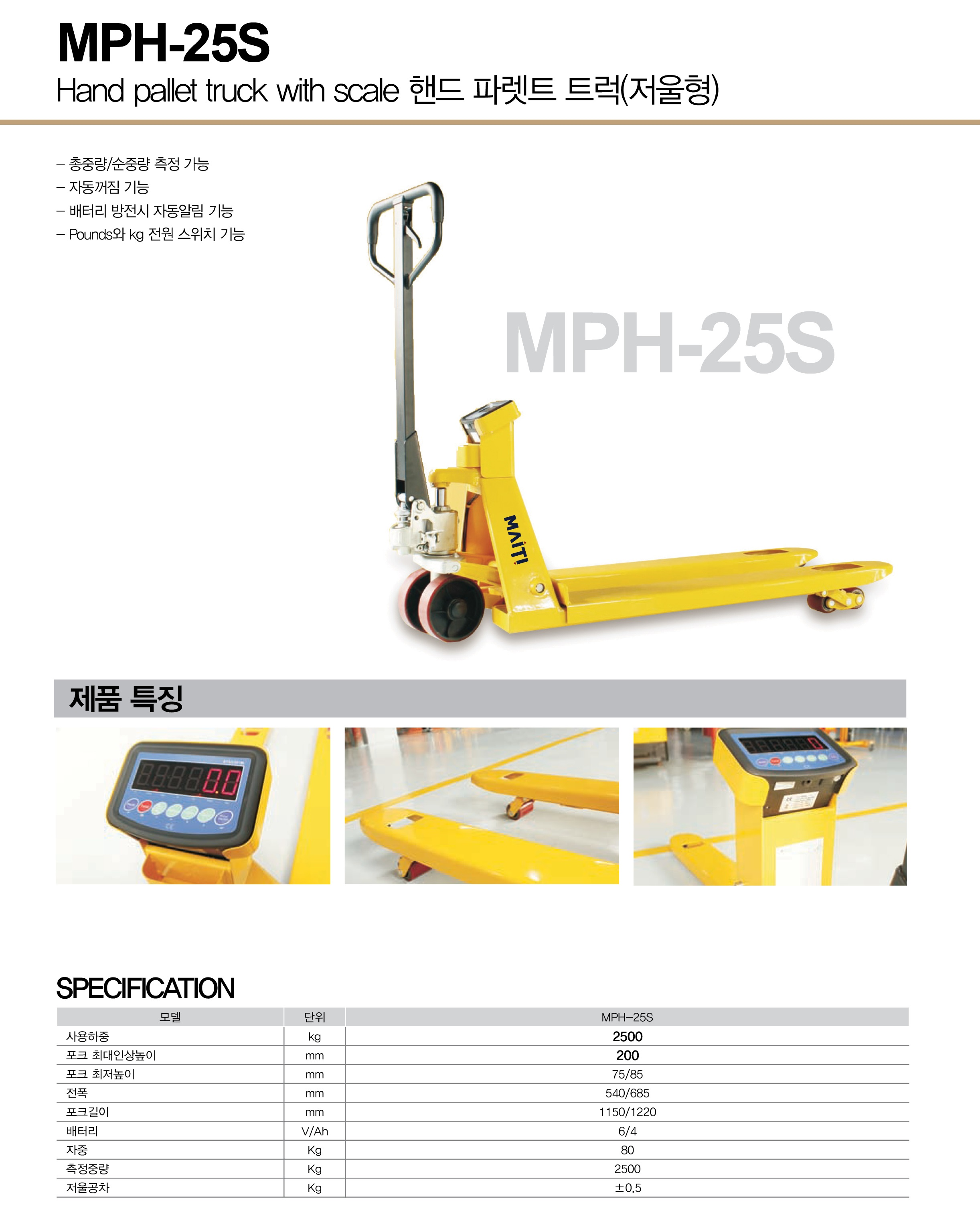 저울형 파렛트 트럭 MPH-25S